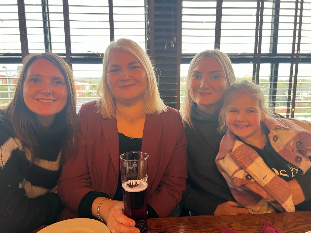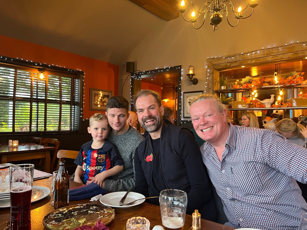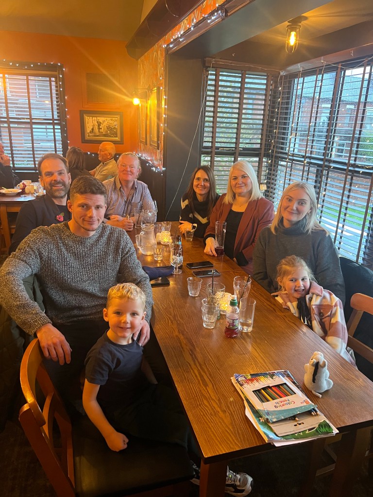 Then off to Royton, nr Oldham to meet Michelle’s sister Deborah and her husband Andy for lunch along with our niece Lois, her boyfriend Thomas and their two children Eloise and Freddy. Had a great time at the Halfway House, a pub we last went to with Michelle’s dad Neil over 10yrs ago. Lots of funny stories ensued about Neil and his love of Banoffee pie!