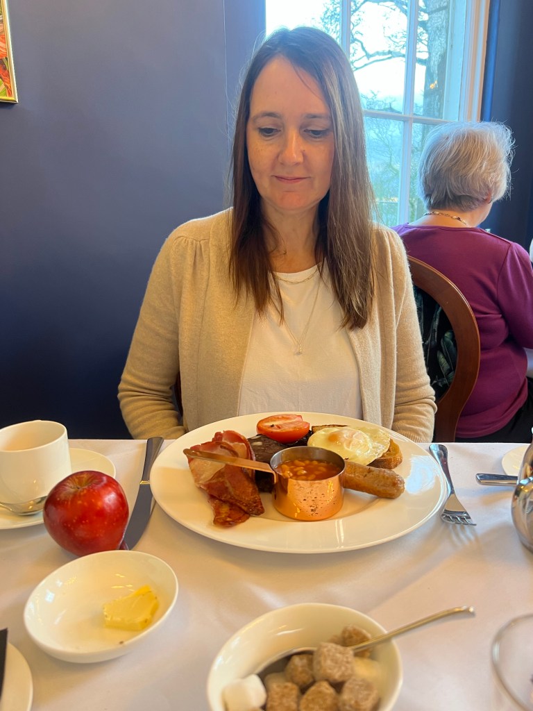 Great start to the day with Michelle getting stuck into a full Scottish breakfast.