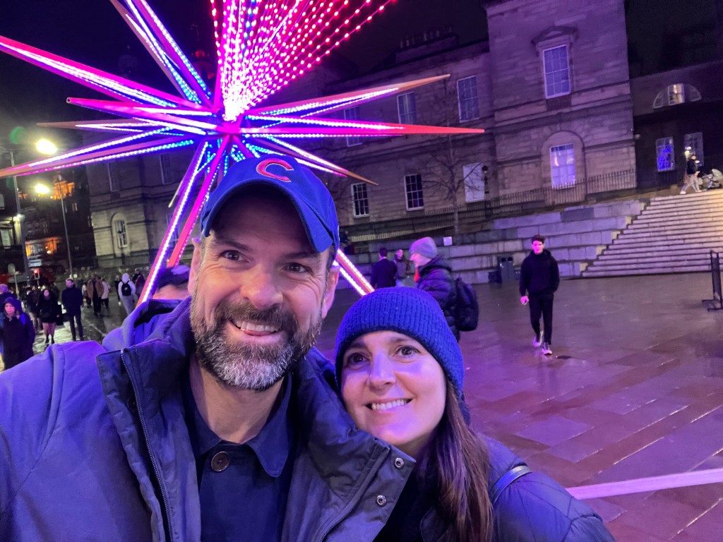 After a short coffee break, we continued with a day of walking and headed out west of Princes Street, via Princes Park, which is currently themed with a Xmas light-show.