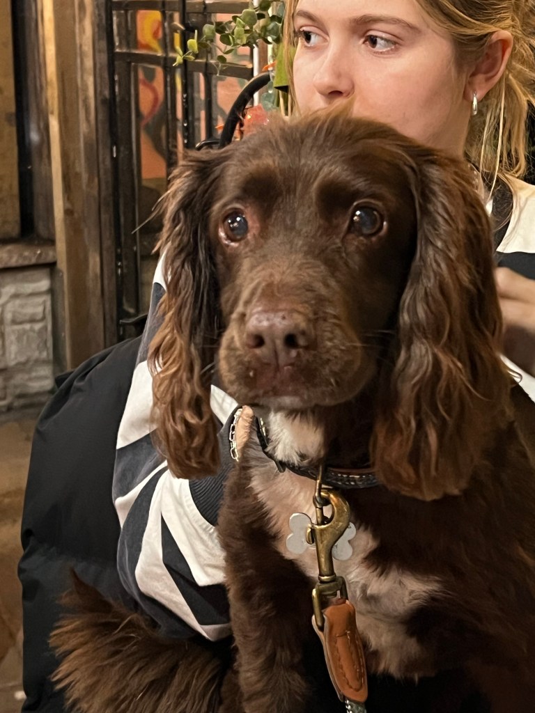 After a really enjoyable meal (despite the ever louder voices from the Xmas parties nearby), we said our final goodbyes to our favourite cocker spaniel, the perennial pup, Coco.