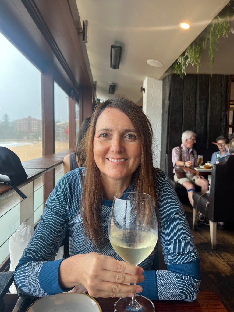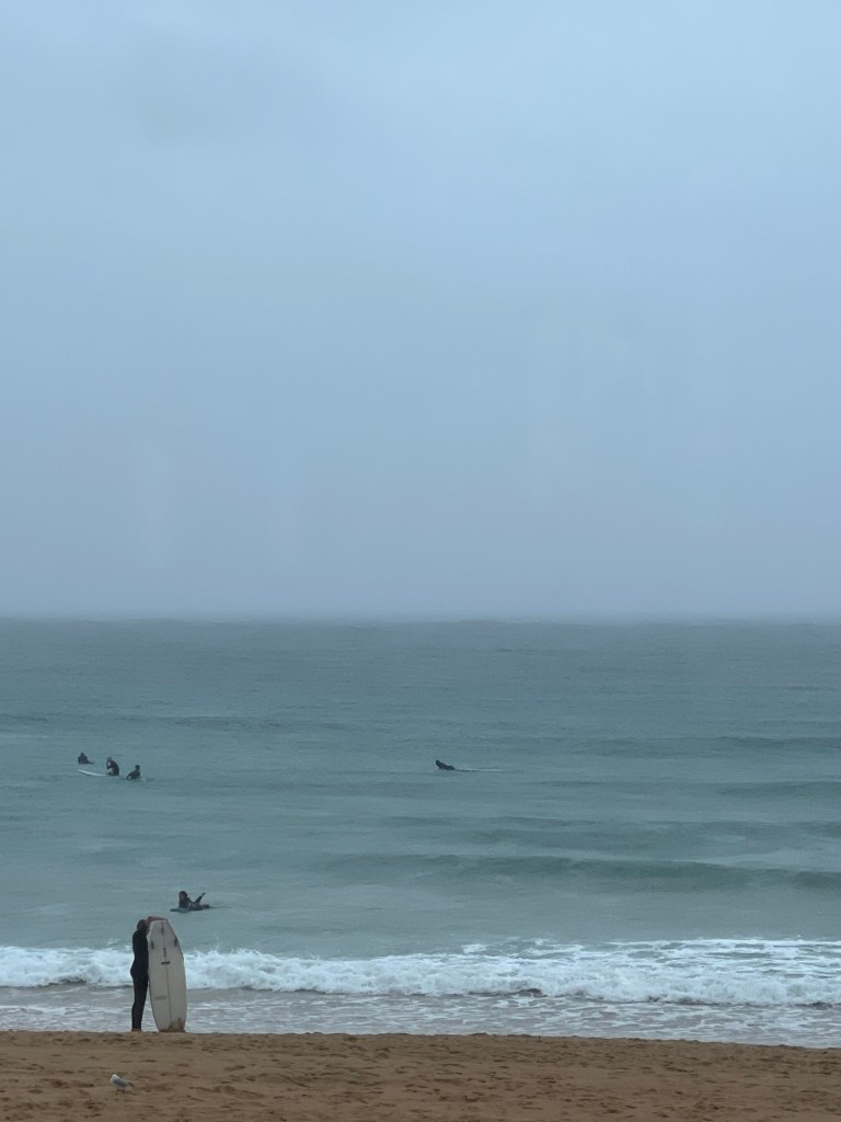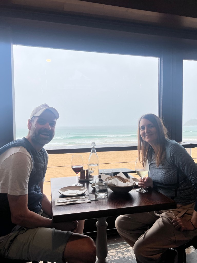 Given the change in weather, we took an executive decision to go ‘directly’ to The Pantry on Manly beach for vino and tapas. Despite the rain, the view of the beach looked amazing, with a bevy of surfers making the most of the deserted beach.
