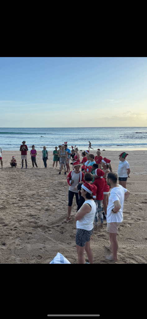 The morning started early today, with Andy attending the Manly Bootcamp Xmas extravaganza at 6am on the beach. Stretching exercises, beach running, volleyball and swimming kept everyone amused and slightly fitter.