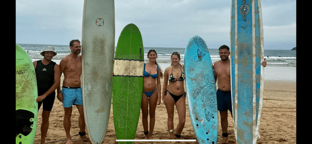 As novices this meant that the surfing was limited, but the laughs were plentiful. Sadly having a big board doesn’t make it any easier as Andy found out. Congrats to Danny, Maria’s boyfriend, who managed to make it up on the board and almost stood up.
