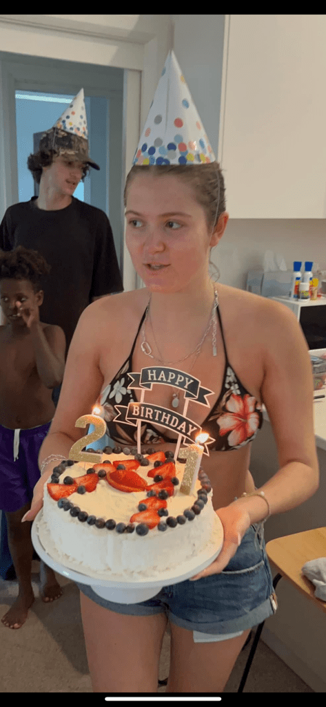 It was made even special to have Amelia present the cake, as she had designed the fruit topping into the initial A!