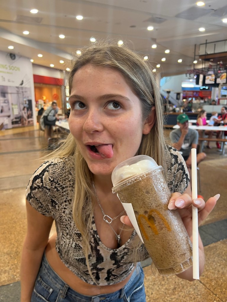 There the girls indulged in the delicacy that it is frozen cola with ice cream!