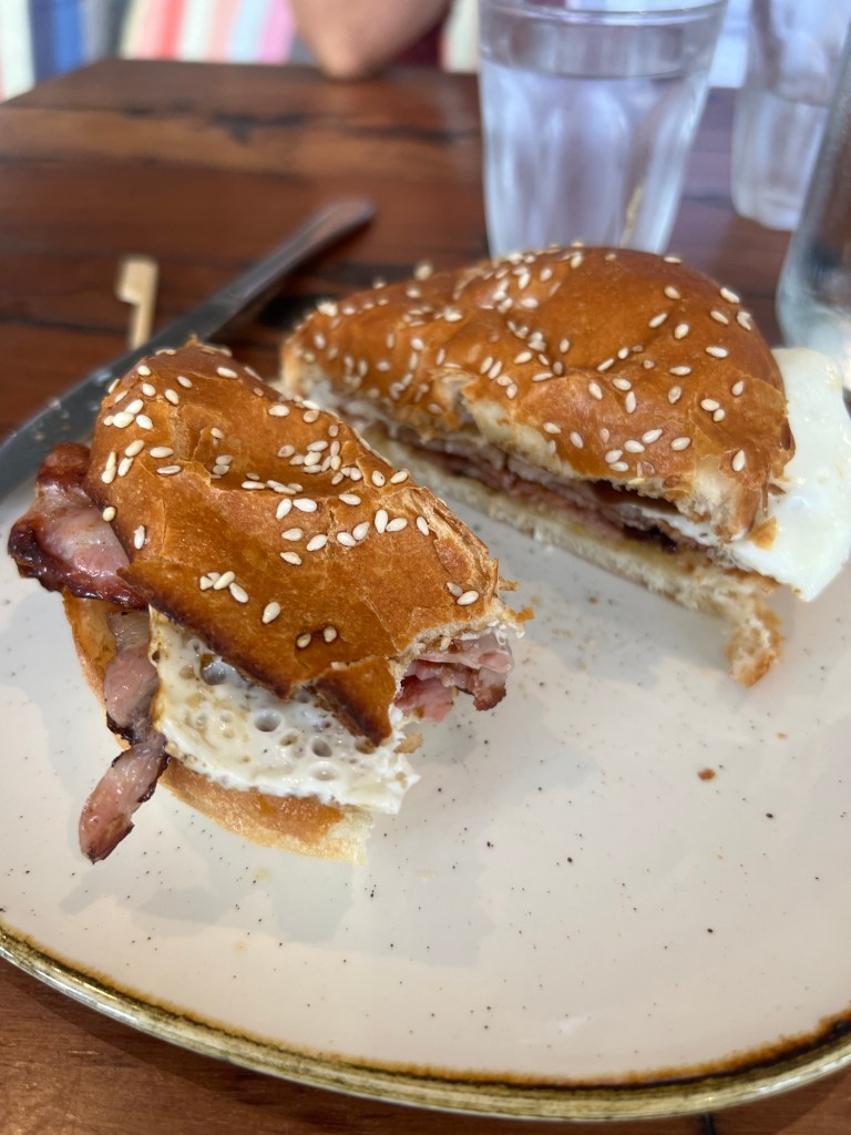 Hyams beach was to be our first, but first we stopped off for brunch and had one of the best bacon & egg sandwiches on the trip to date!