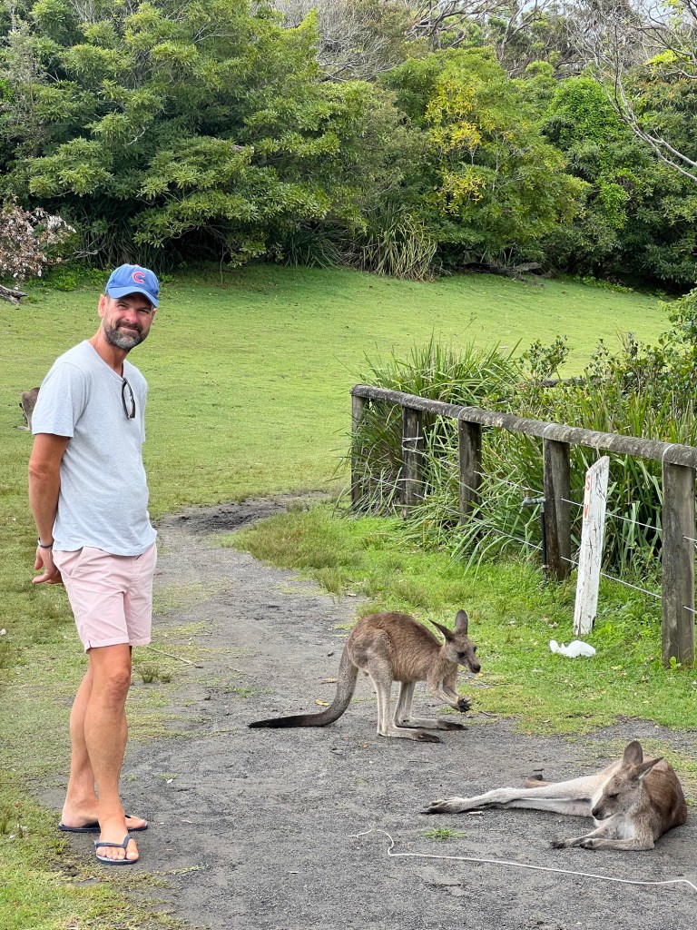At Cave beach we were greeted with some of the wildlife, a mob of kangaroos with their young joeys.