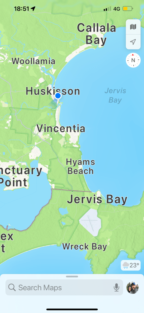 Finally to those who don’t know this part of NSW (they know who they are!), the Google map below shows the Jervis Bay area and the peninsula we’ve been staying in for the last few days.