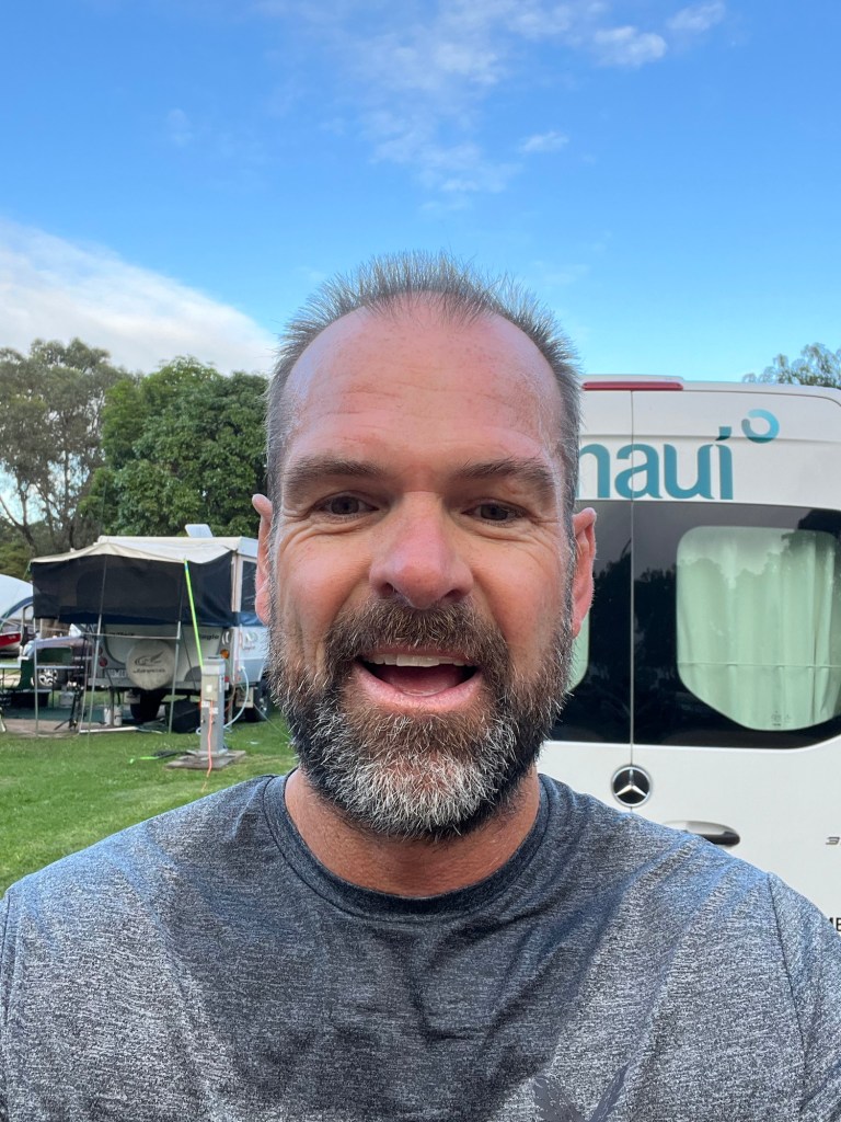 We found the campsite to the rear of the Waterwheel Tavern Pub which faced out to the lake and nearby beach. This proved to be a great find, with free electricity, water & toilets in a quiet spot.