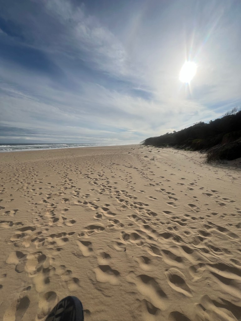 With the sun breaking through, we headed to the sand dunes where we were protected from the winds off the main beach.