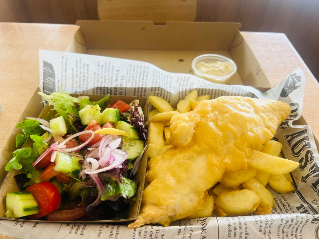 In acknowledgment of our healthy exercise we treated ourselves to a lunch of fish & chips!