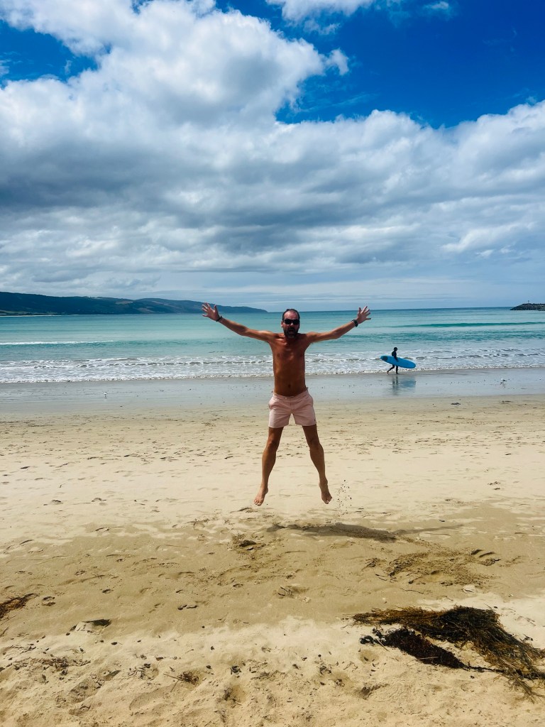 Post lunch Andy went out to the beach to ‘celebrate’ with a star jump or two.