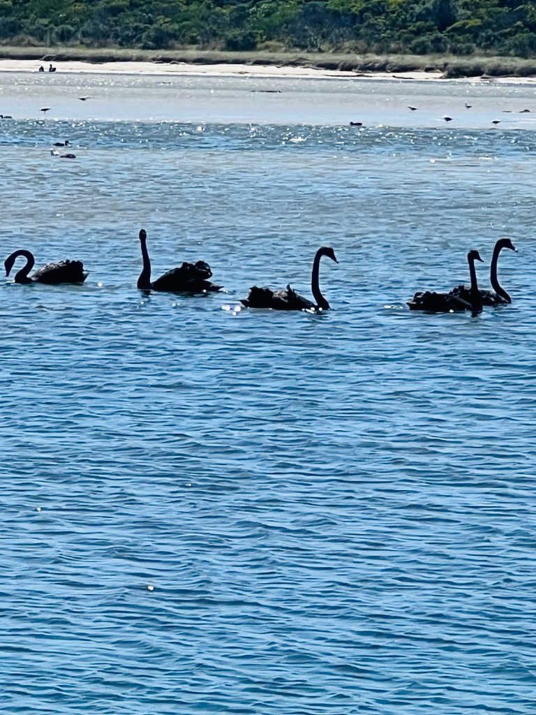 There was so much wildlife on the Nelson reserve, notably the black swans which are really eye catching set against the white swans of the Uk.