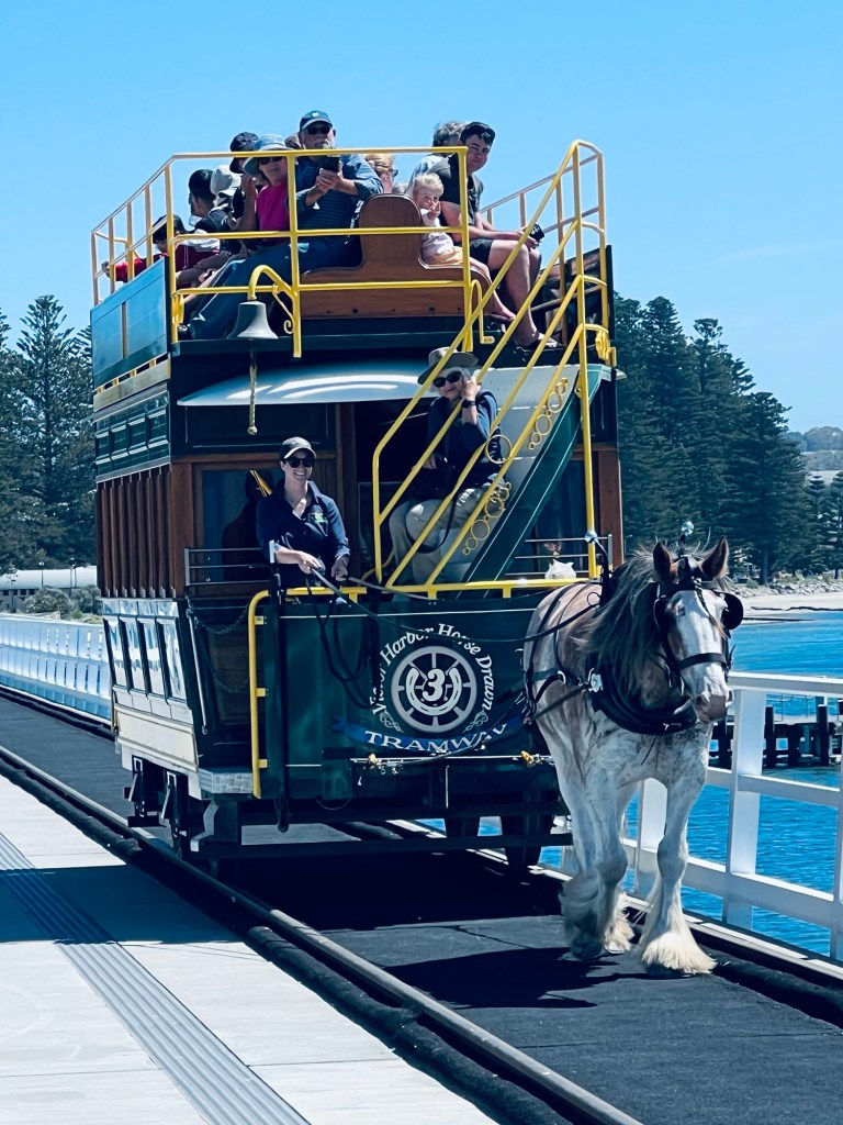We were last in Victor Harbor some 10years ago when the old wooden causeway was still in use. In the intervening period it’s been replaced by a modern concrete structure with a lane for the horse drawn tram.