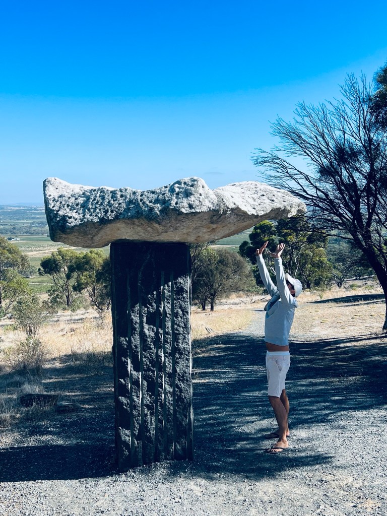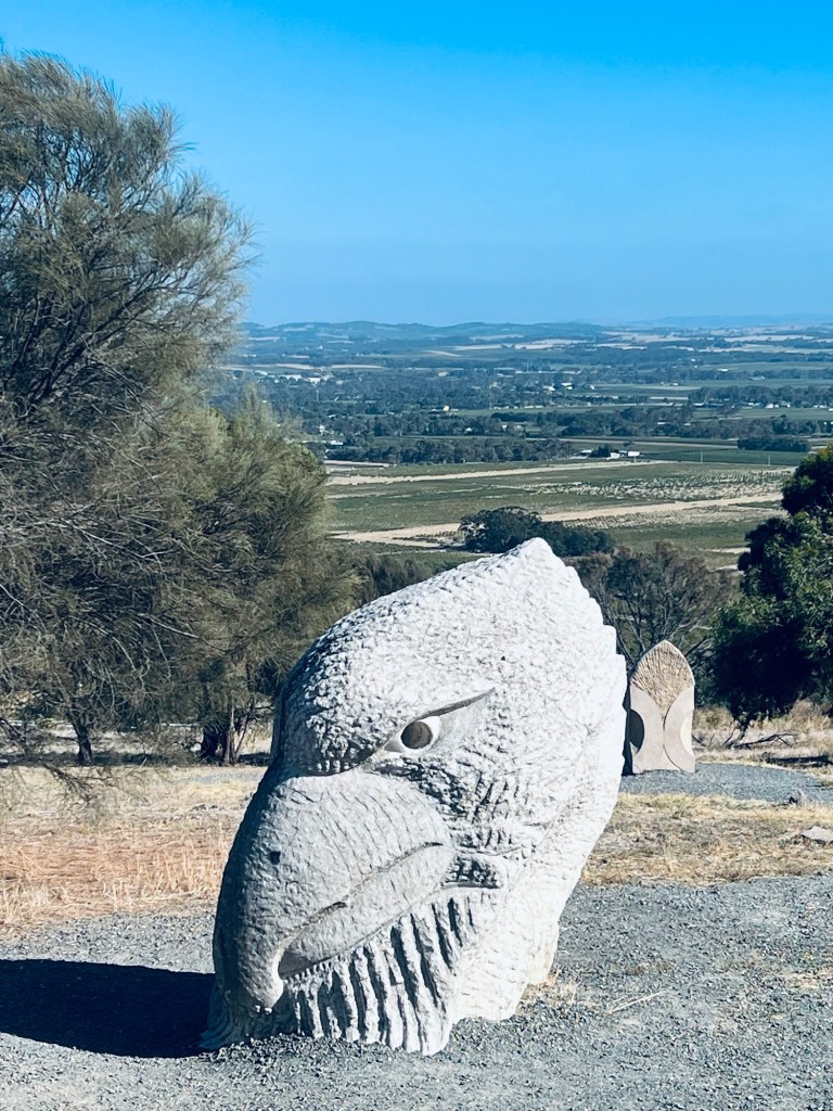 After an obligatory bacon and egg roll and coffee we drove up into the hills to Mengler Hill to take in the great views across the Barossa Valley. Within the viewing parking area we had a walk around a series of modern rock sculptures.