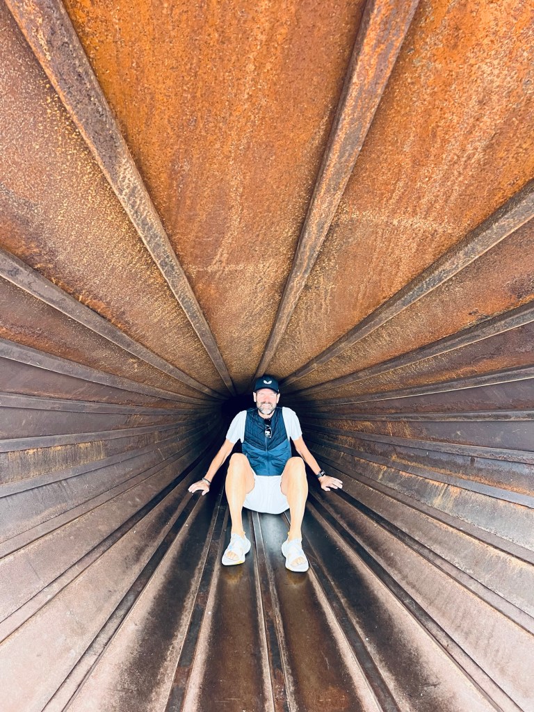 Outside of the museum were a number of artefacts, notably a giant horn like structure large enough for Andy to hide inside.