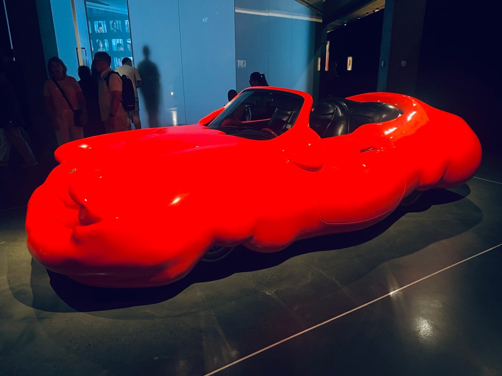 Porsche car ballooned across the chassis, which somehow works and really catches the eye.