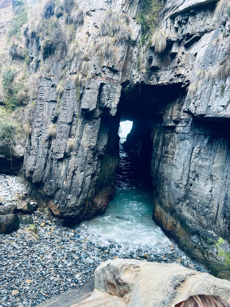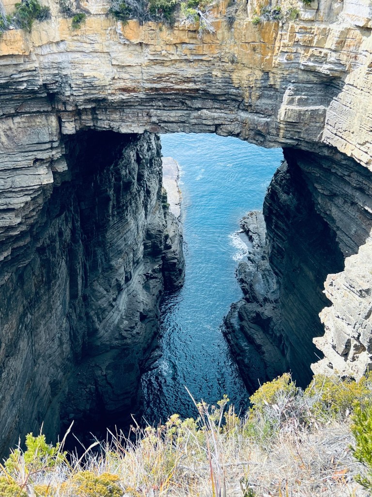 Another few miles down the road took us to the Tasman Arch created over hundreds of years of sea erosion resulting in the collapse of an underground cave creating an inland ‘hole’ and a remaining arch way in the rock. It’s the scale of the arch that takes your breath away.