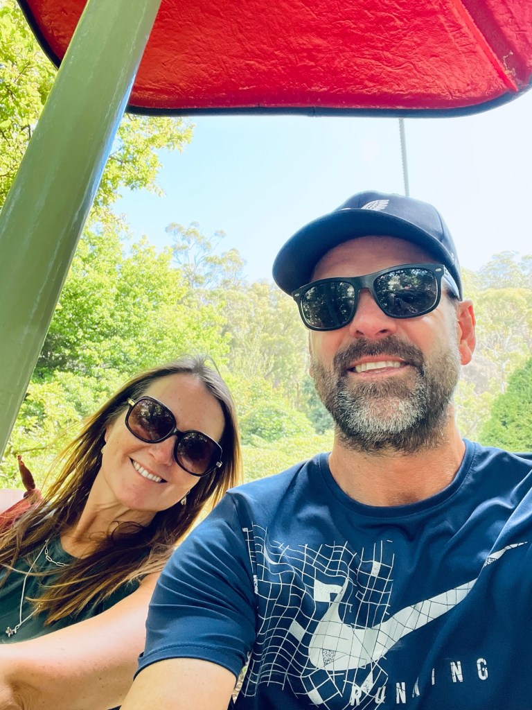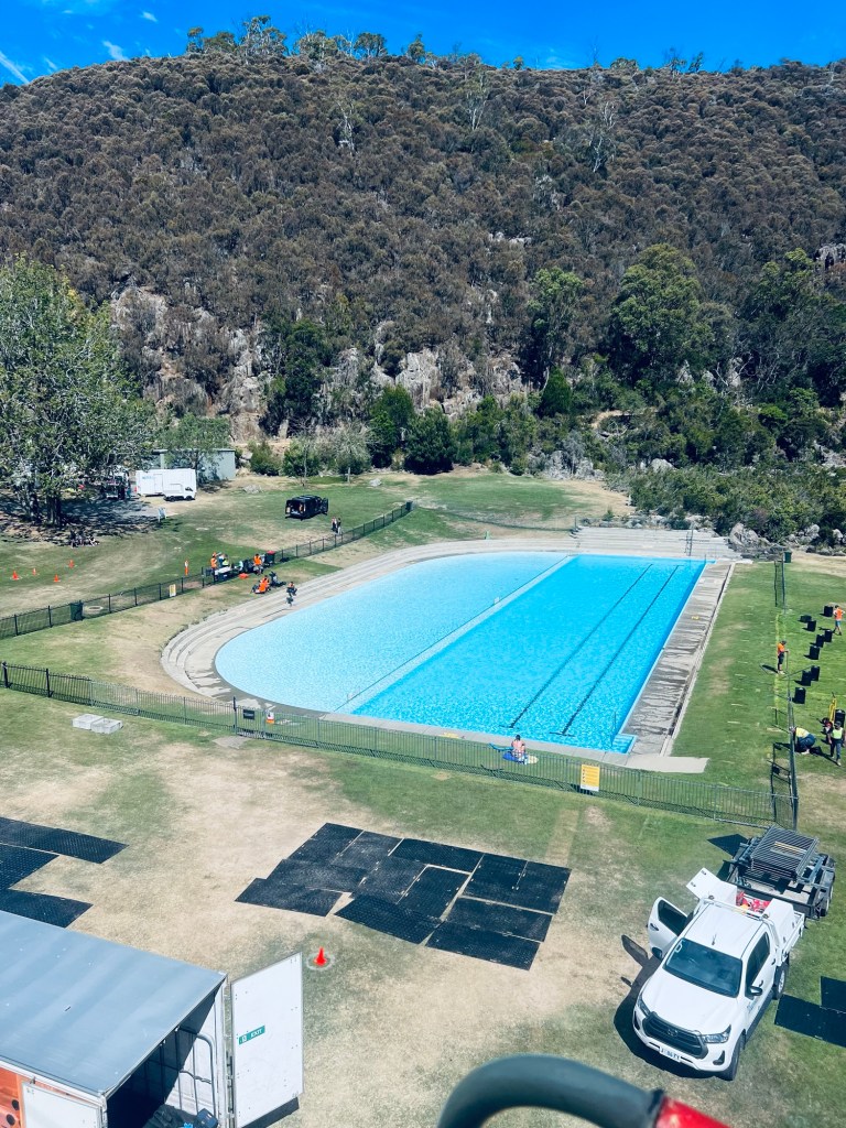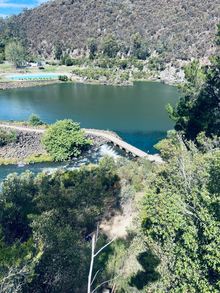 After navigating our way past the resident wallaby and Peacocks, we took a 10min ride over the river, gorge and swimming pool below.