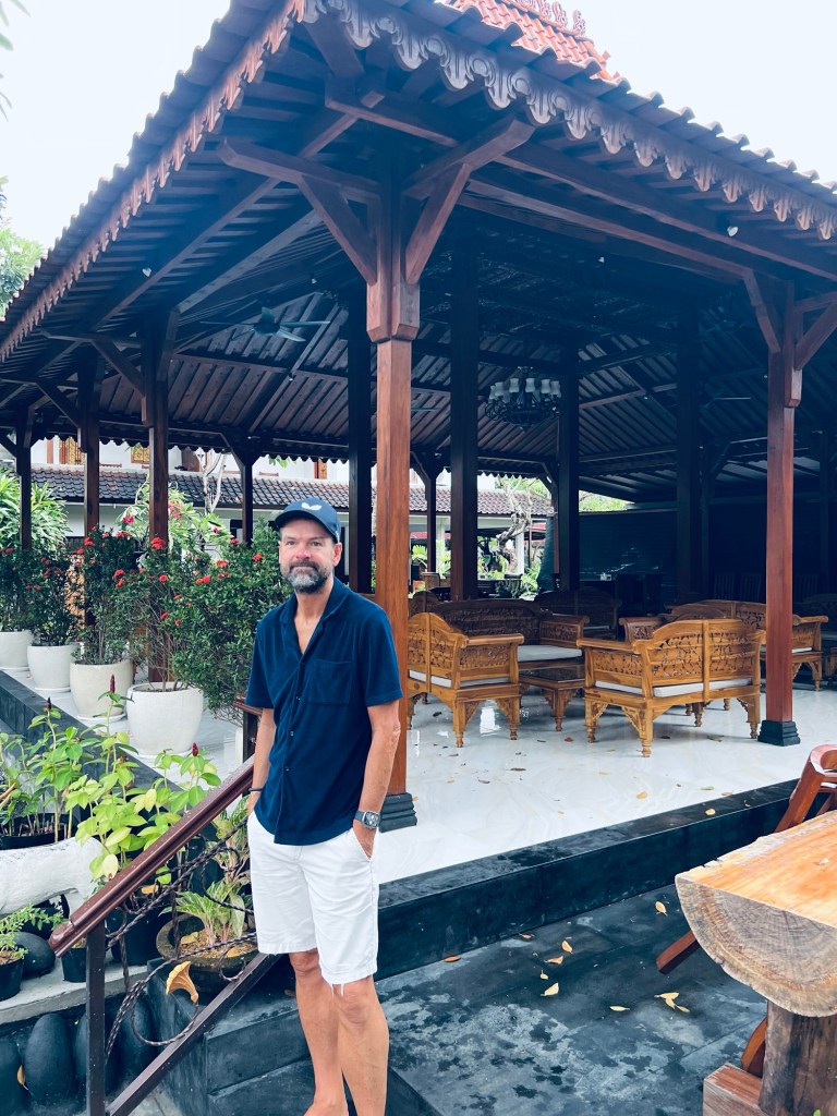 We are staying in an authentic Balinese hotel, a stones through from Sanur beach. At breakfast we were greeted by smiling faces from the staff and settled in with omelettes made on the spot. After a good feed, we set off to explore the local area and a walk down to the beach front. We have arrived at the tail end of the wet season, so whilst it’s hot and humid, it rained on and off for most of the day.