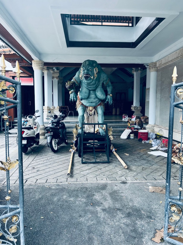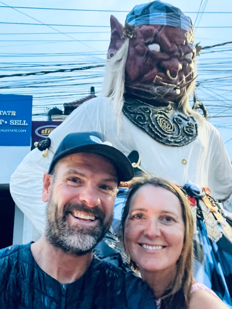 Late afternoon we met our fellow tour groupies, who we will be travelling with for the next 8 days as we experience Classic Bali. There’s about 16 of us, mainly from the Uk, Canada and Germany. After initial intros we headed out for an early dinner before going to watch the evening’s celebrations of the ‘demon’ displays.