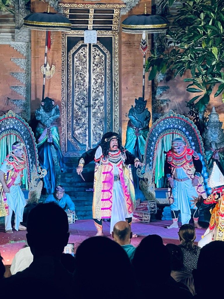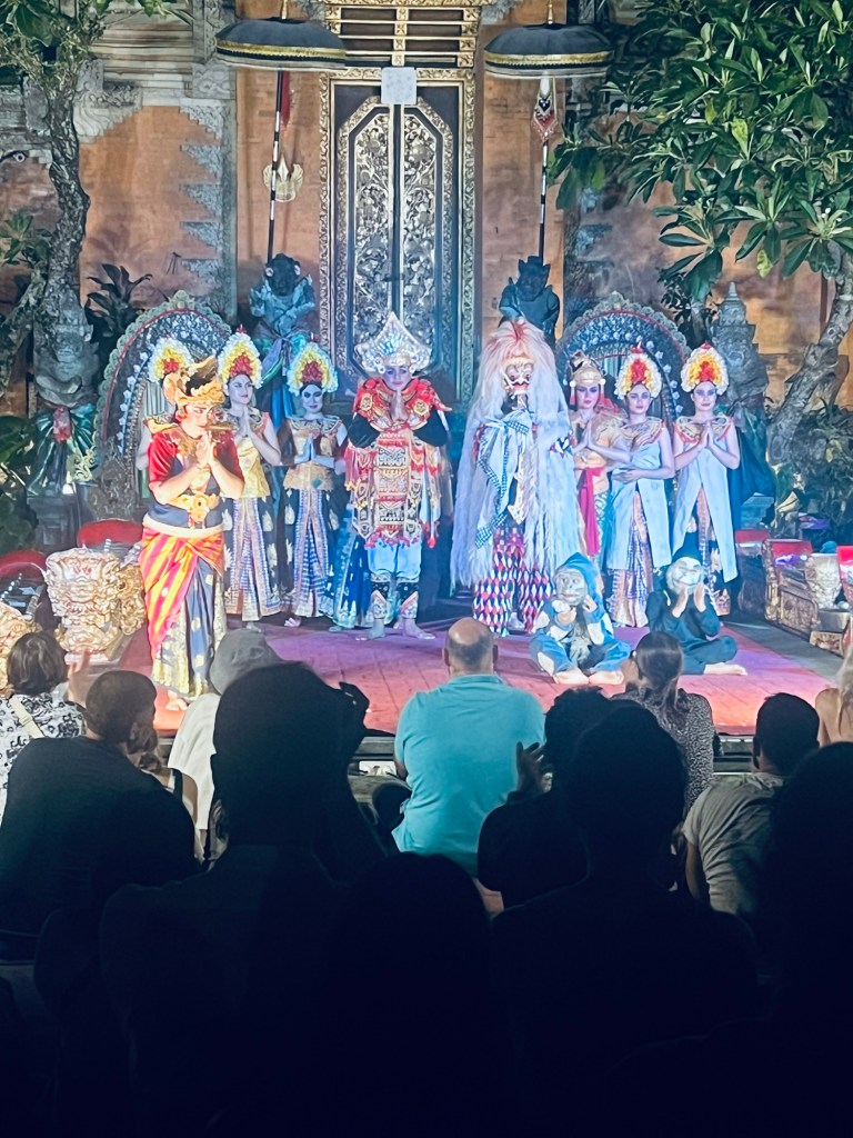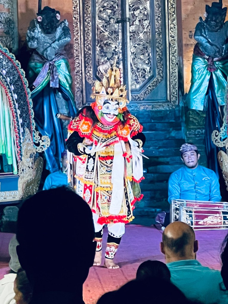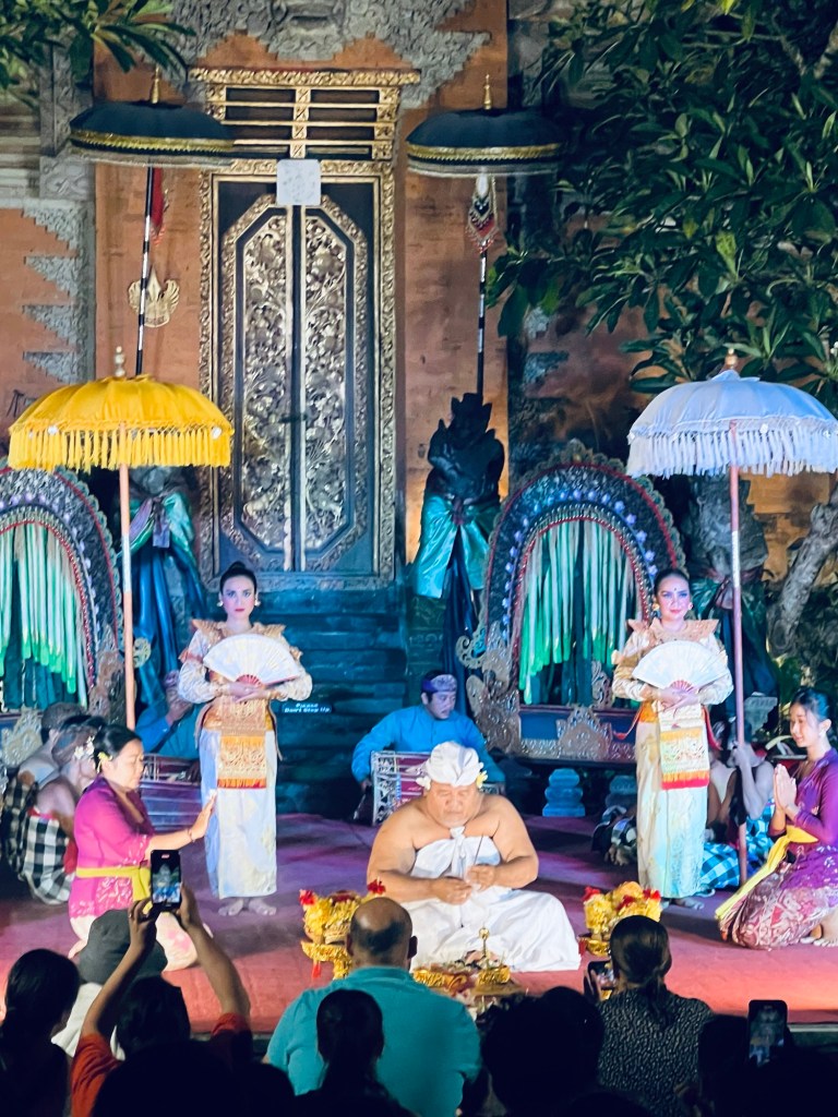 This evening we visited the Royal Palace to see a traditional Balinese dance performance. It turned out to be a mix of a love story, the battle between good and evil with a pantomime mixed in. A little hard to follow but good fun all the same.