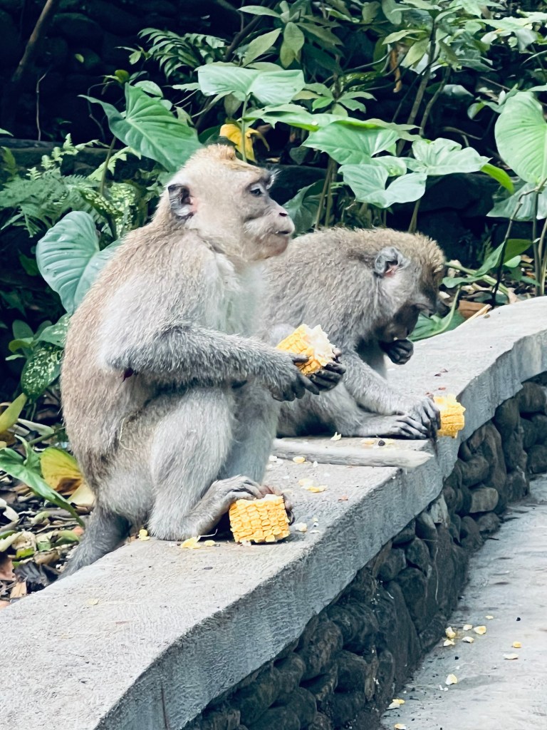 The nearby monkey sanctuary in Ubud provided a spectacular display of monkeys in their natural habitat, alongside temple buildings and stunning jungle scenery.