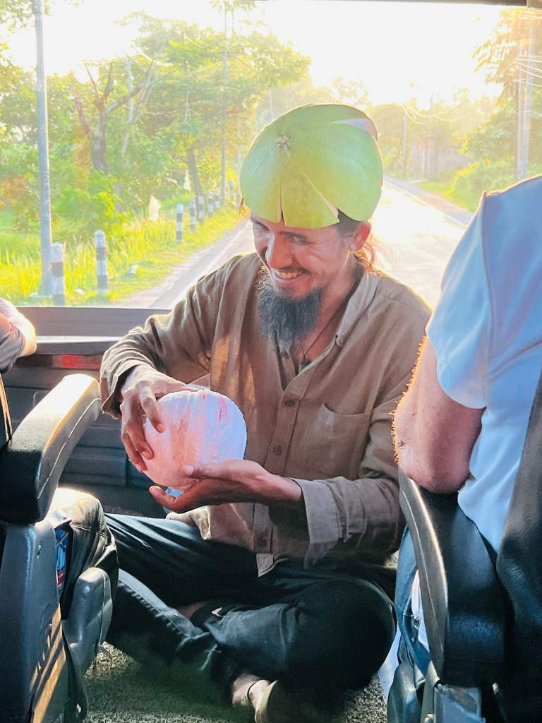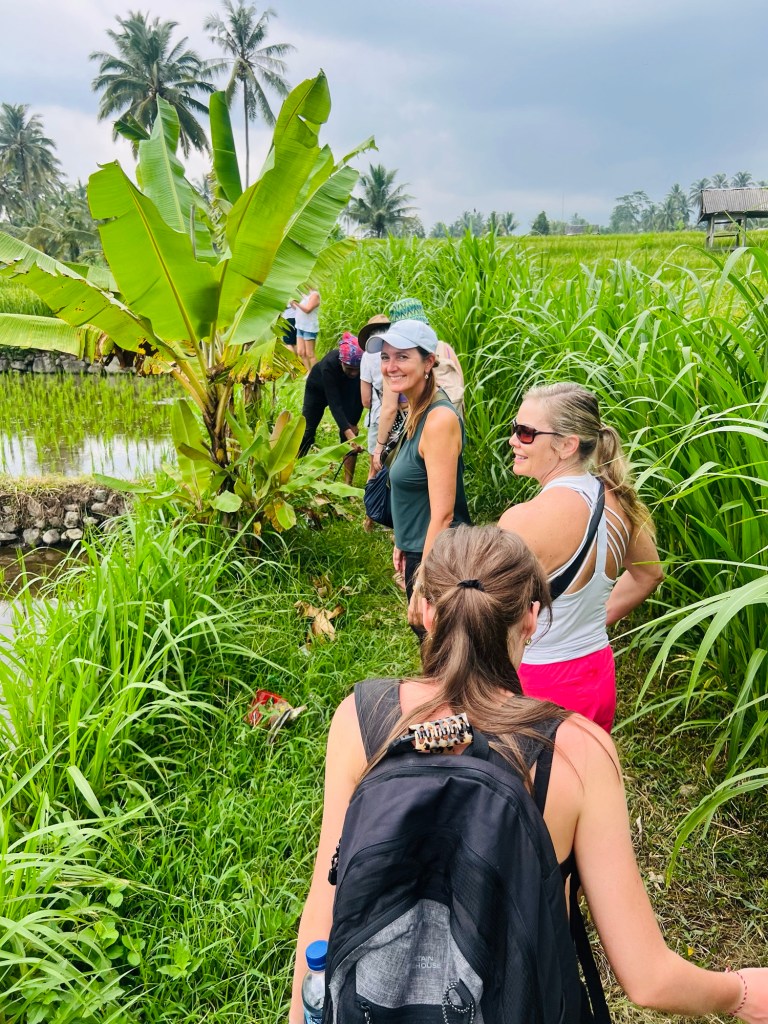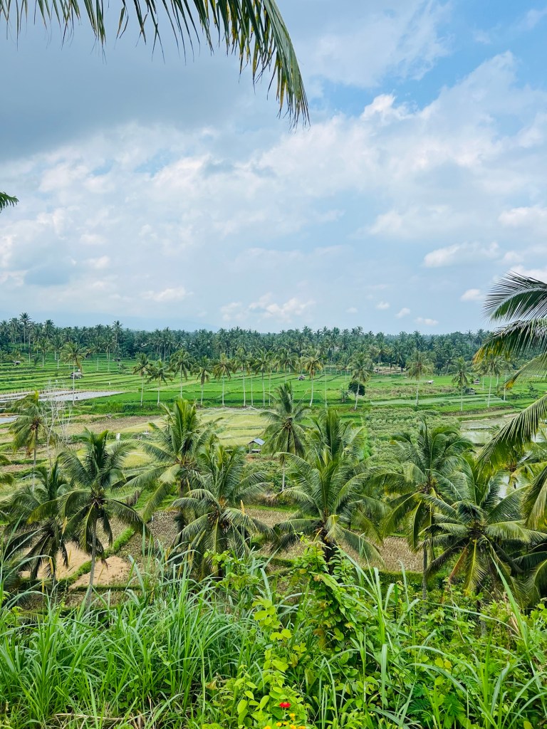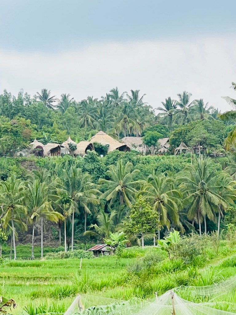 After crossing rivers and walking up banks we eventually arrived at our lunch stop, looking out across the valley over the coconut trees and paddy fields.