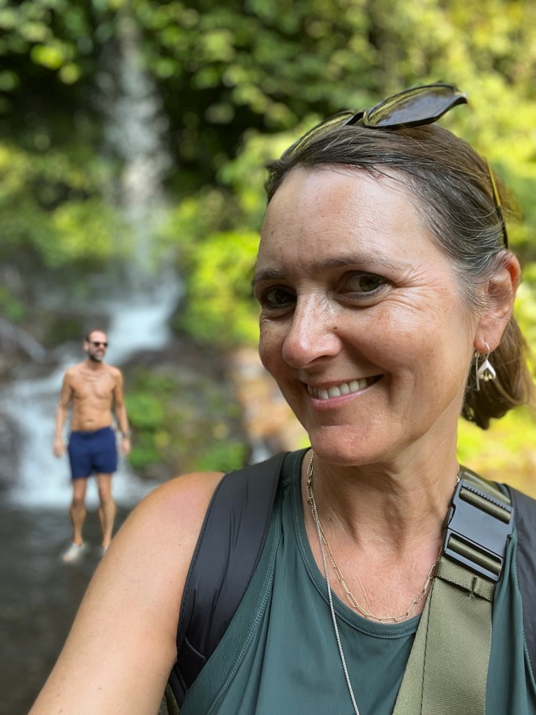 After visiting the first waterfall, we were promised the opportunity to swim at the next larger waterfall. Just a 30min walk in between, with a few steps up and down!