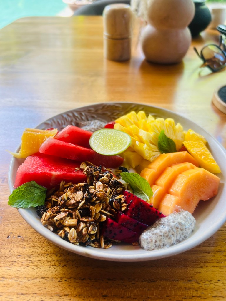 After all that exercise, we tucked into a fantastic and generally healthy brekkie of fruit and granola followed by avocado on toast. Yum yum.