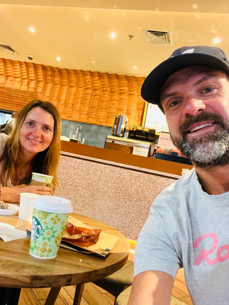 After a trip to the supermarket to buy supplies for the next week or so, something we haven’t done for all, we have picked up our 4th Grab taxi of the day (we might buy shares in them at this rate) and are at the airport waiting to meet the girls off their flight.