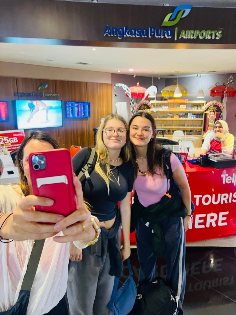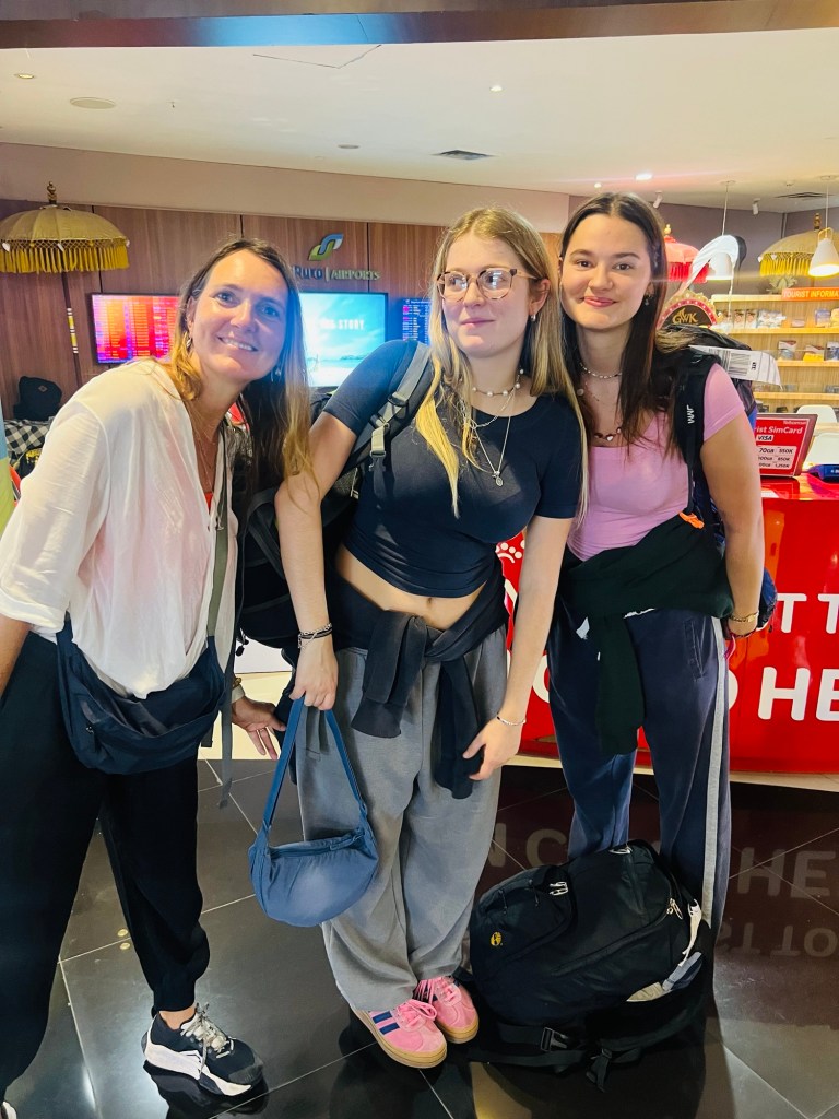 At long last, after battling their way through security and extra bag checks Amelia and Meg have arrived. Both were a little blurry eyed, not surprisingly, but ready to face their adventures ahead!