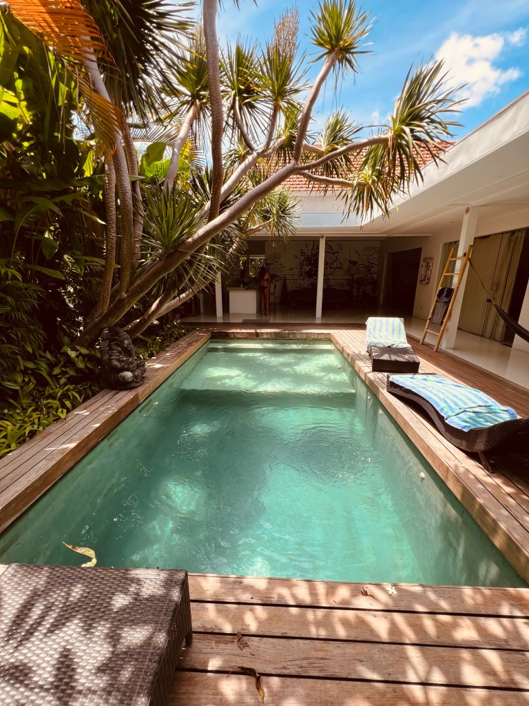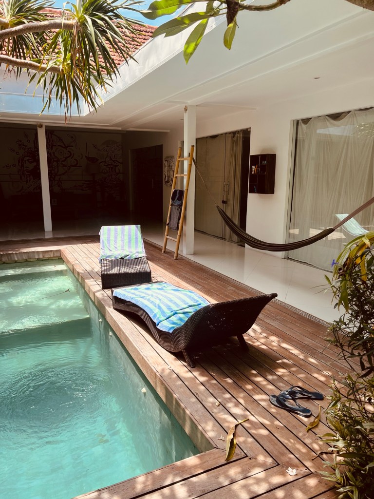 Like all journeys in Bali, finding the actual place you’re going to takes time. Place names and addresses are vague and it’s made up worse when the accommodation is tucked away down a side passage. Fortunately we managed to get hold of the villa manager by WhatsApp.