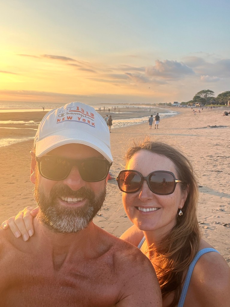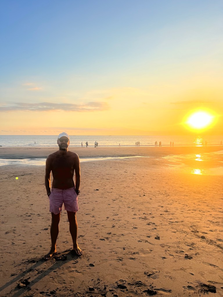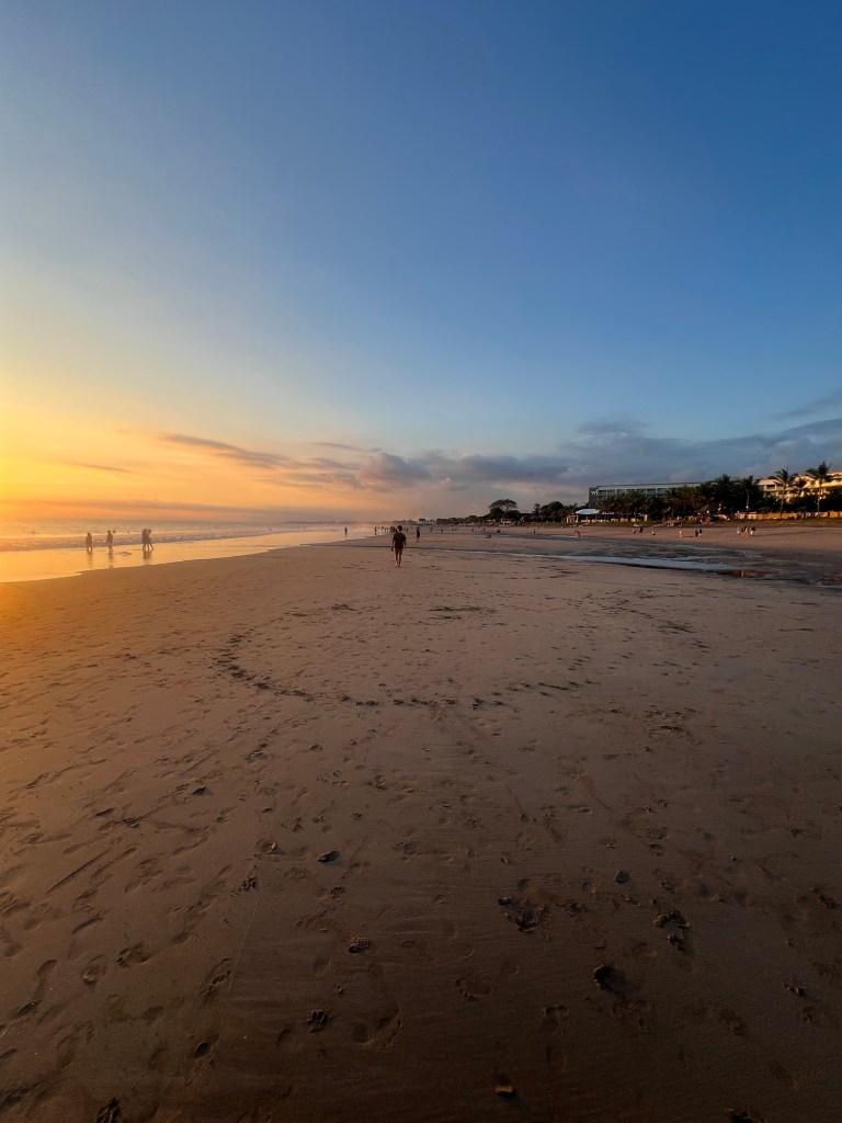 Strolling along the beach with the sun going down was magical and picture book perfect.