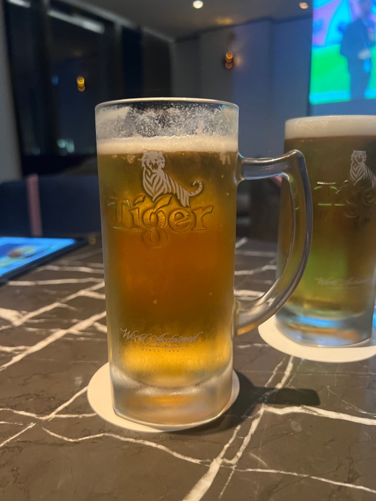 After a quick unpack, we headed to the restaurant bar on floor 40M for a cool beer and as luck would have it the start of the Man Utd v Liverpool game. Andy was in heaven as you’ll see from the photos below.