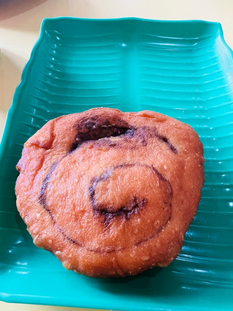 After the monkey sanctuary visit we stopped at a local market for lunch on our way to Sandakan. Andy went for a savoury black bean pastry.