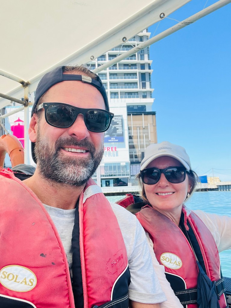 Despite being in the middle of the bay, 4 people including one child managed to transfer onto our boat without falling into the water.