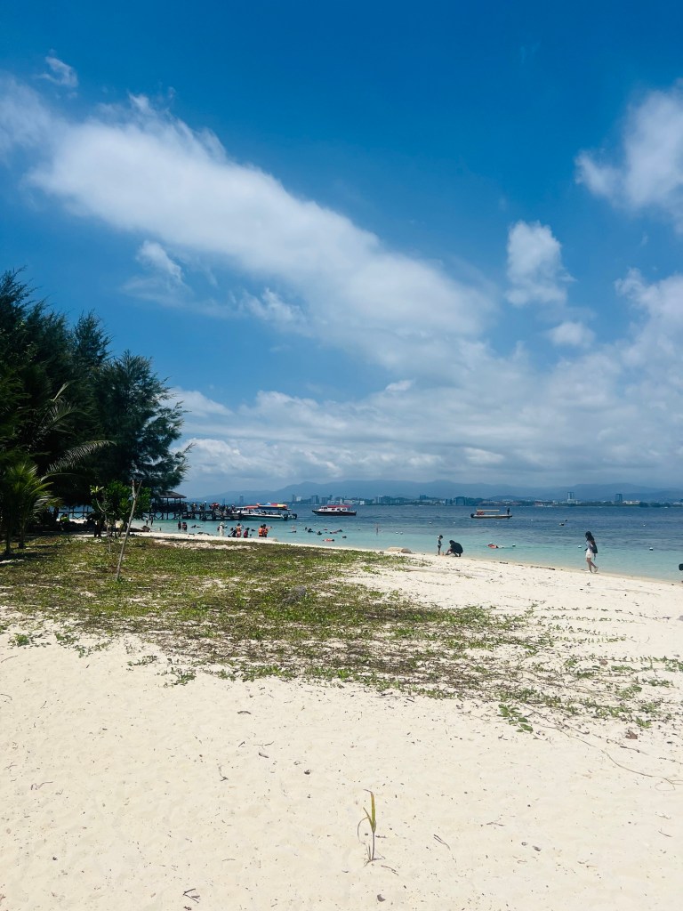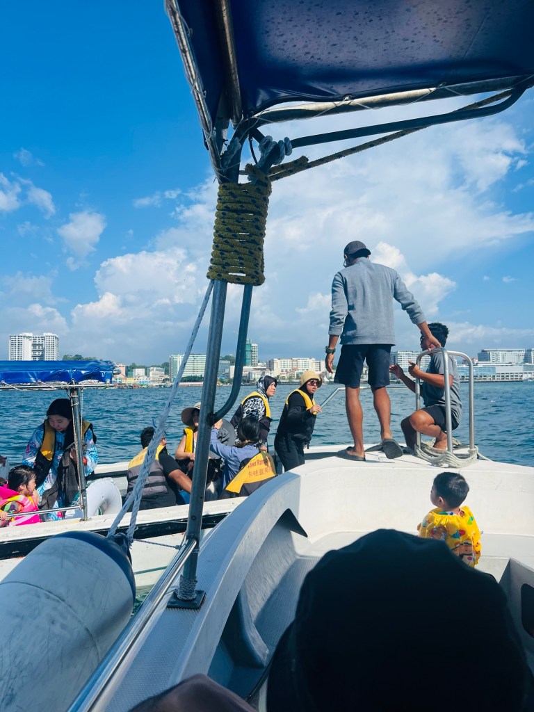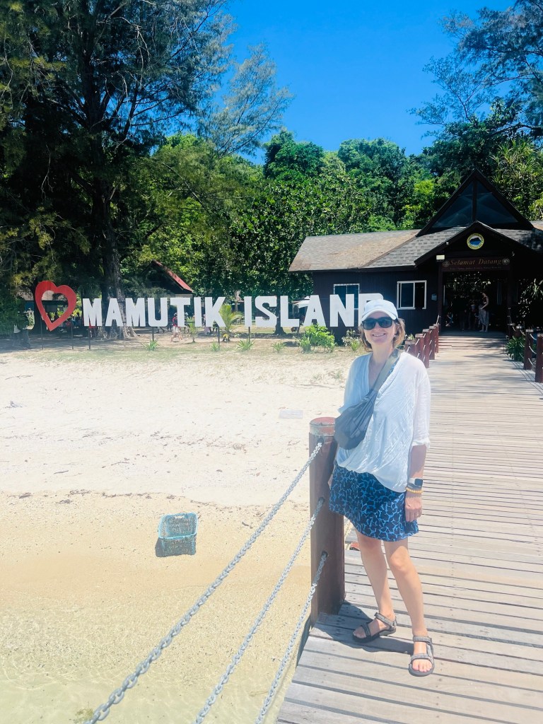 The walk down to Jesselton Point ferry terminal was a v hot walk along the waterfront, with the temperature already at 34 degrees at 9.45am. Once we’d acquired our ferry ticket we were thankfully on the island of Mamutik within an hour.