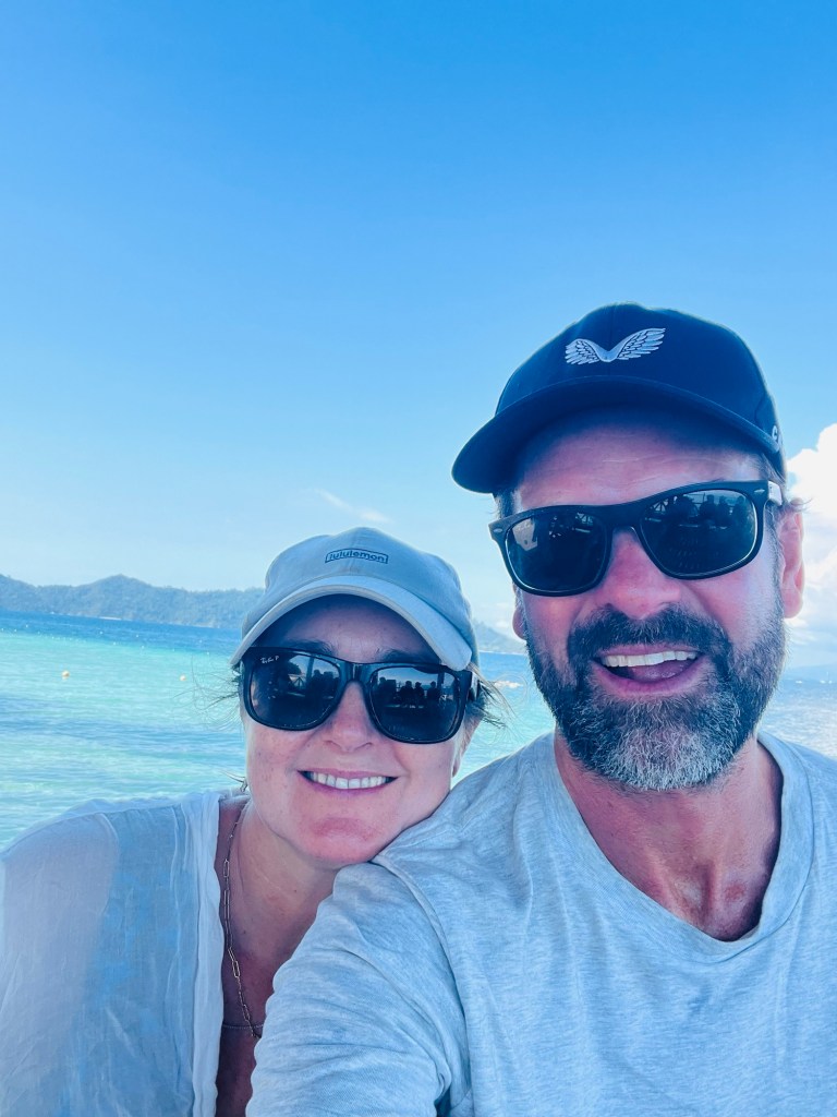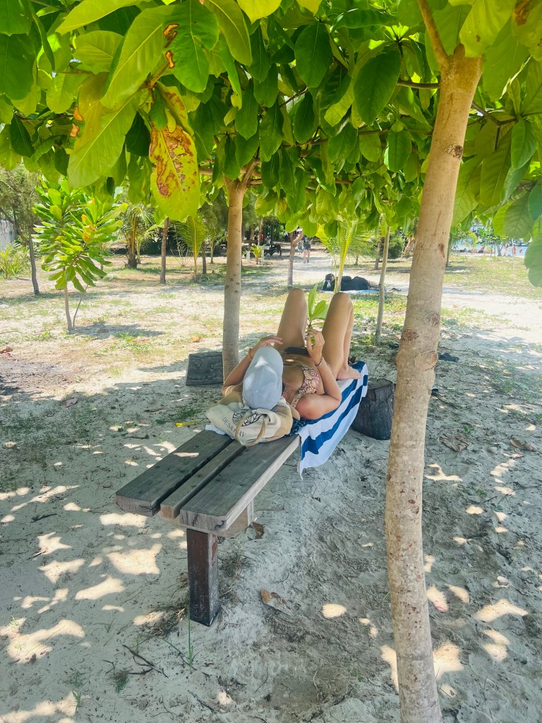 We quickly got comfortable on the island, Michelle in the shade, Andy soaking up the sunshine.