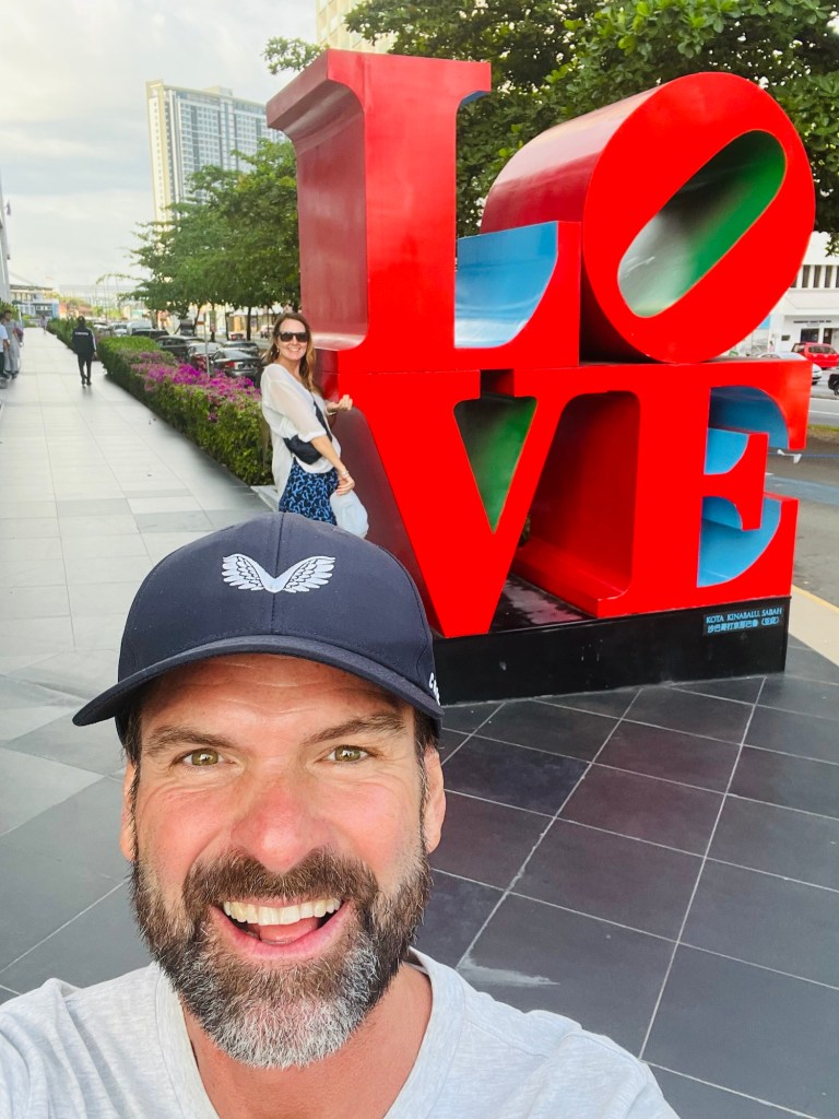 Another early morning run for Andy around the streets of KK finishing his 10k jaunt under the Malaysian flag opposite our hotel.