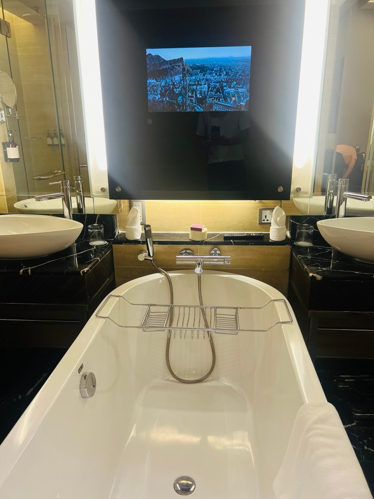 After a traffic affected drive to the Majestic Hotel arriving just after 00.30am, we quickly hit the sack as we have an early start again tomorrow with a flight to Penang on the west coast of the country. Before going to sleep, we didn’t forget to admire our surroundings even if we were only in the room for 7hrs!!