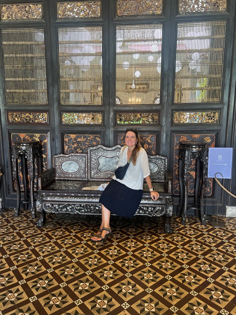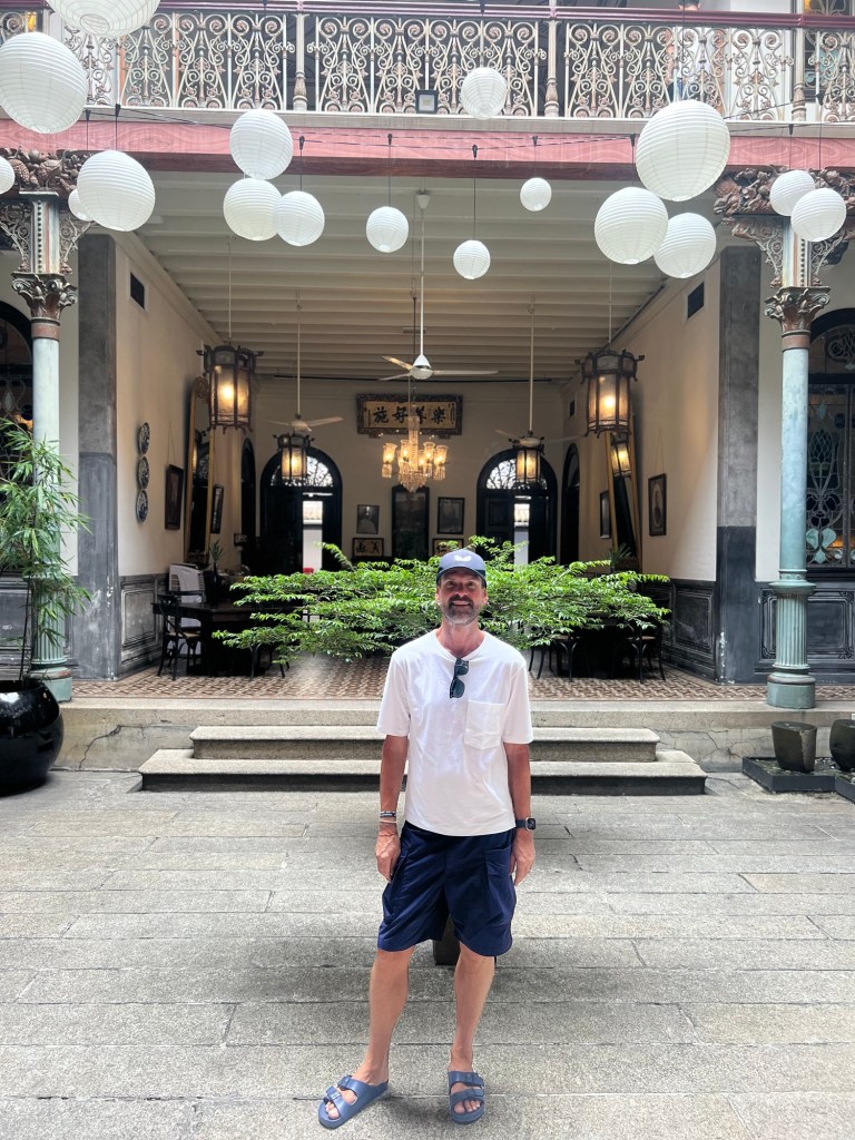 After the walk around the graffiti streets, we headed up to the Blue Mansion, made famous in recent times as a backdrop for the movie Crazy Rich Asians. It’s a stunning building, once owned by Cheong Fatt Tze, a wealthy Chinese businessman who embraced colonial styles and blended them with Chinese architectural imperialism.