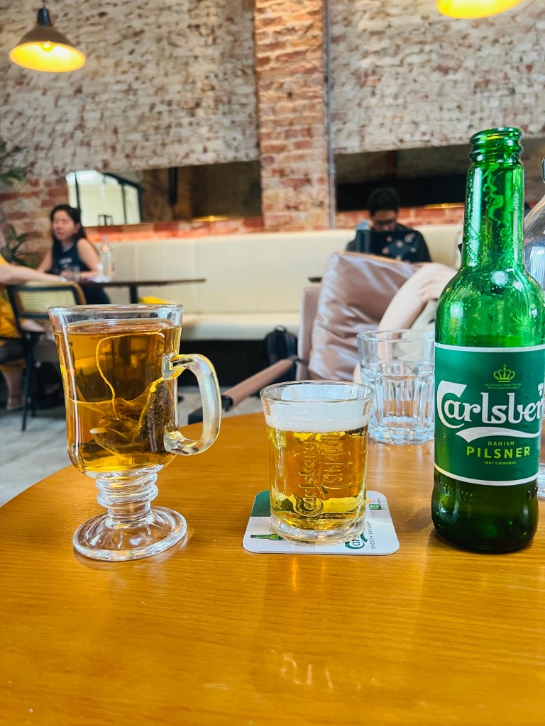After our little tour, we had worked up a sweat and thankfully found a trendy cafe and bar where we were able to relax and enjoy a cool breakfast tea and a Carlsburg.