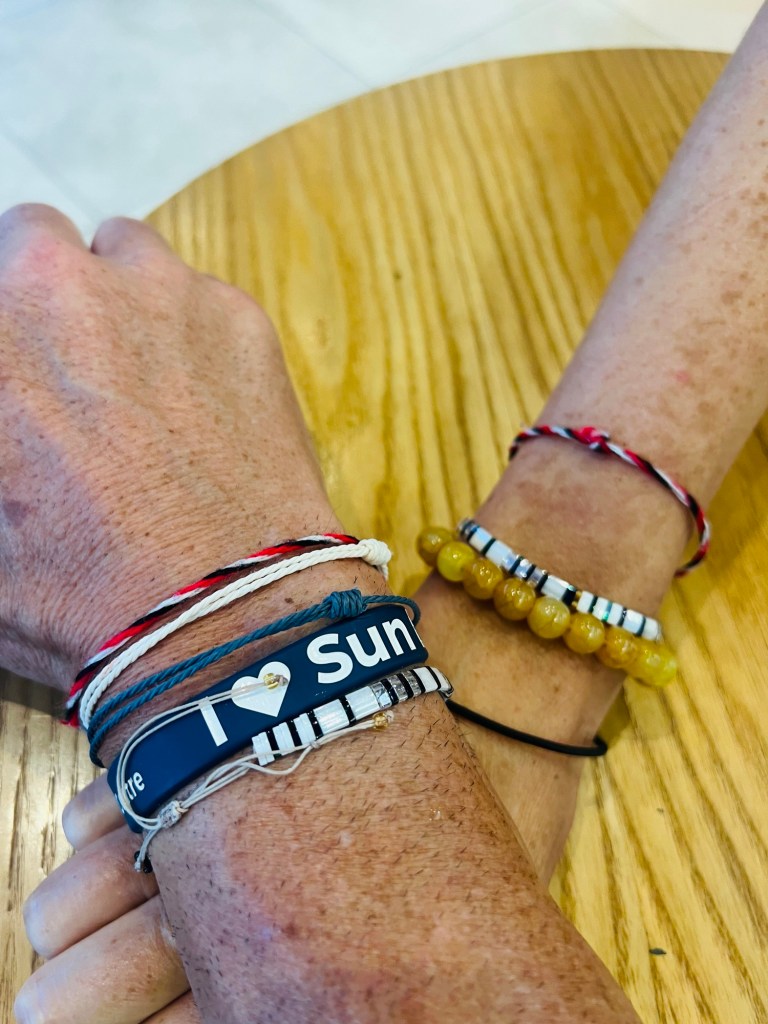 Before the flight and whilst we were at the airport we heard from Jennifer, our Canadian travel buddy from our Lombok trip a month or so back. She was keen to know if we were still wearing our coloured Indonesian wrist band from one of our home visits. The good news is that they are still going strong, hence the photo proof below.