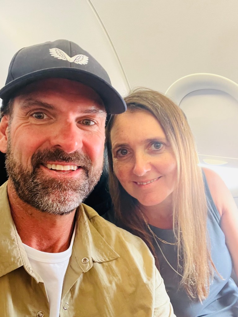 Once in the air, we took our customary photo and messaged our daughter Amelia to let her know we were flying just in case she messaged!