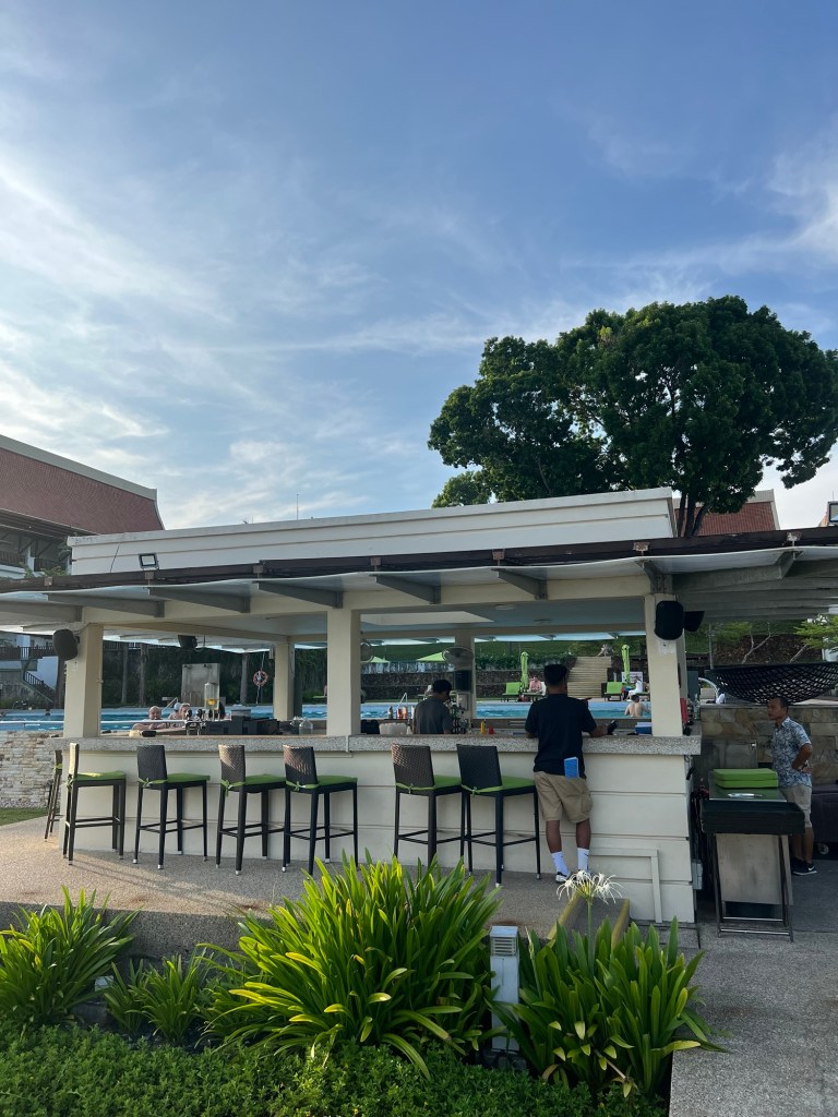 As we missed lunch due to our flight, we decided to head to the bar area and grab a bite and embrace the 180 degree view across the bay with views of the archipelago of islands.