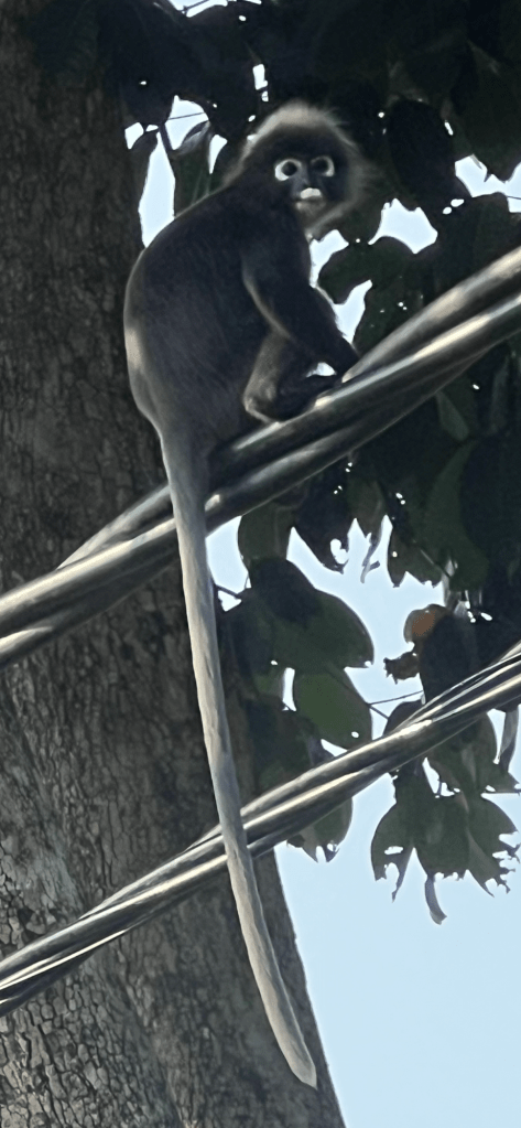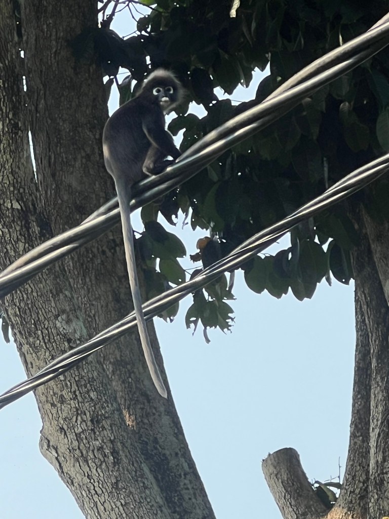 As we got close to our hotel we came across some rare black monkeys who were sitting on a telephone line next to the road.