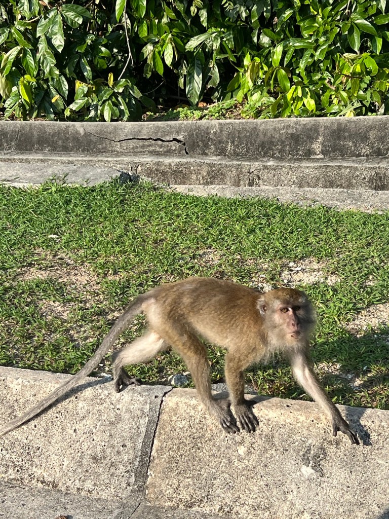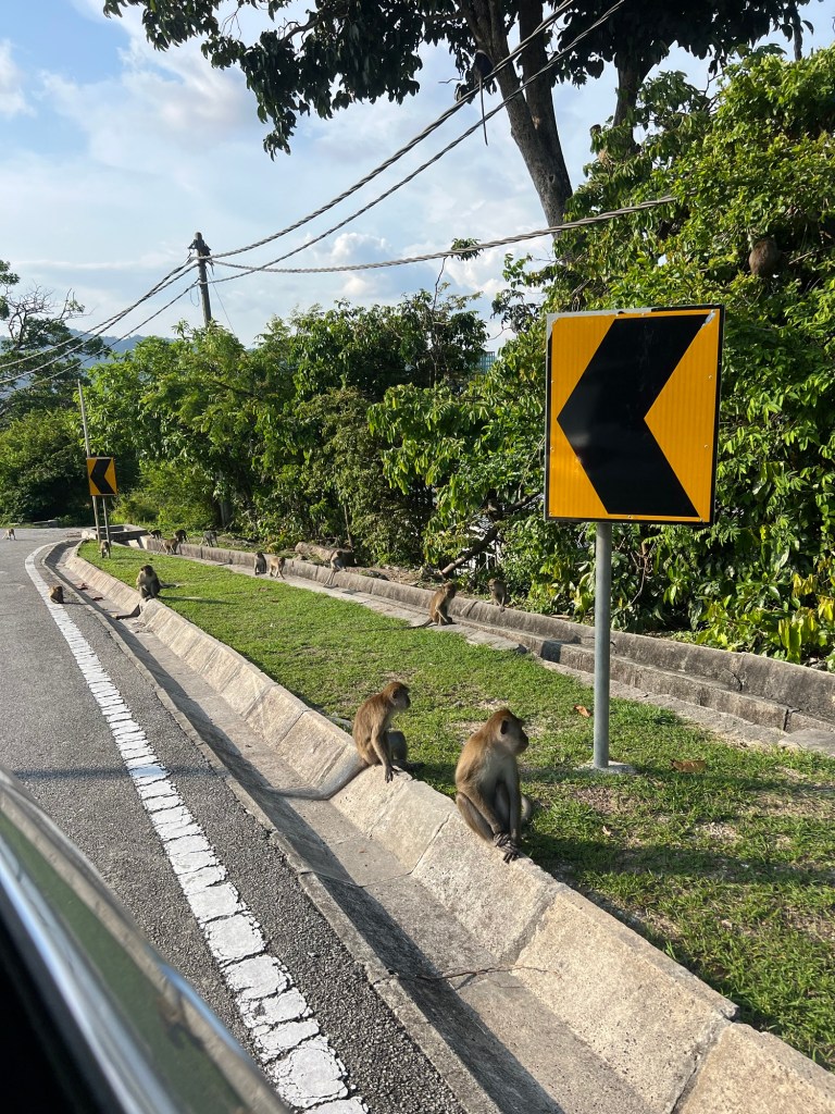 As soon as we slowed the taxi down we were bombarded with local grey monkeys who are a lot braver and approached the car for food!