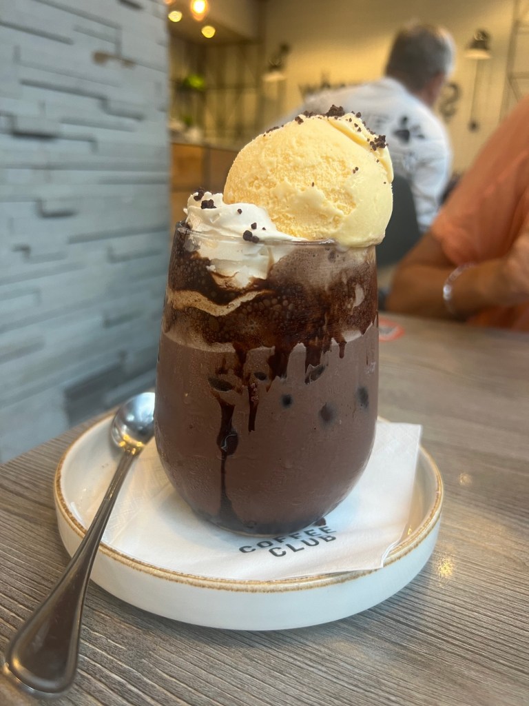 Thankfully the Thai’s have a sweet tooth and we didn’t need much encouragement to try the chocolate and ice cream coffee with ice. It’s a meal in itself!