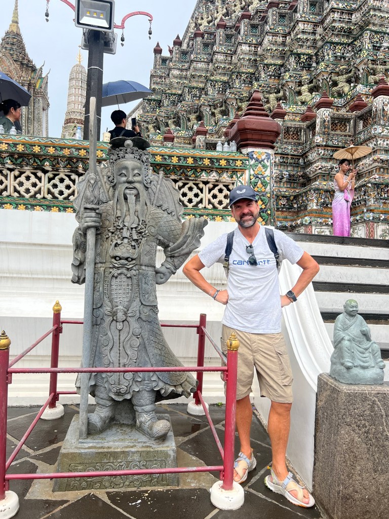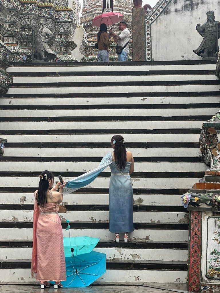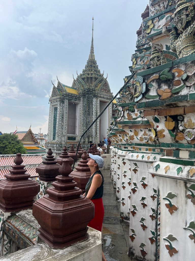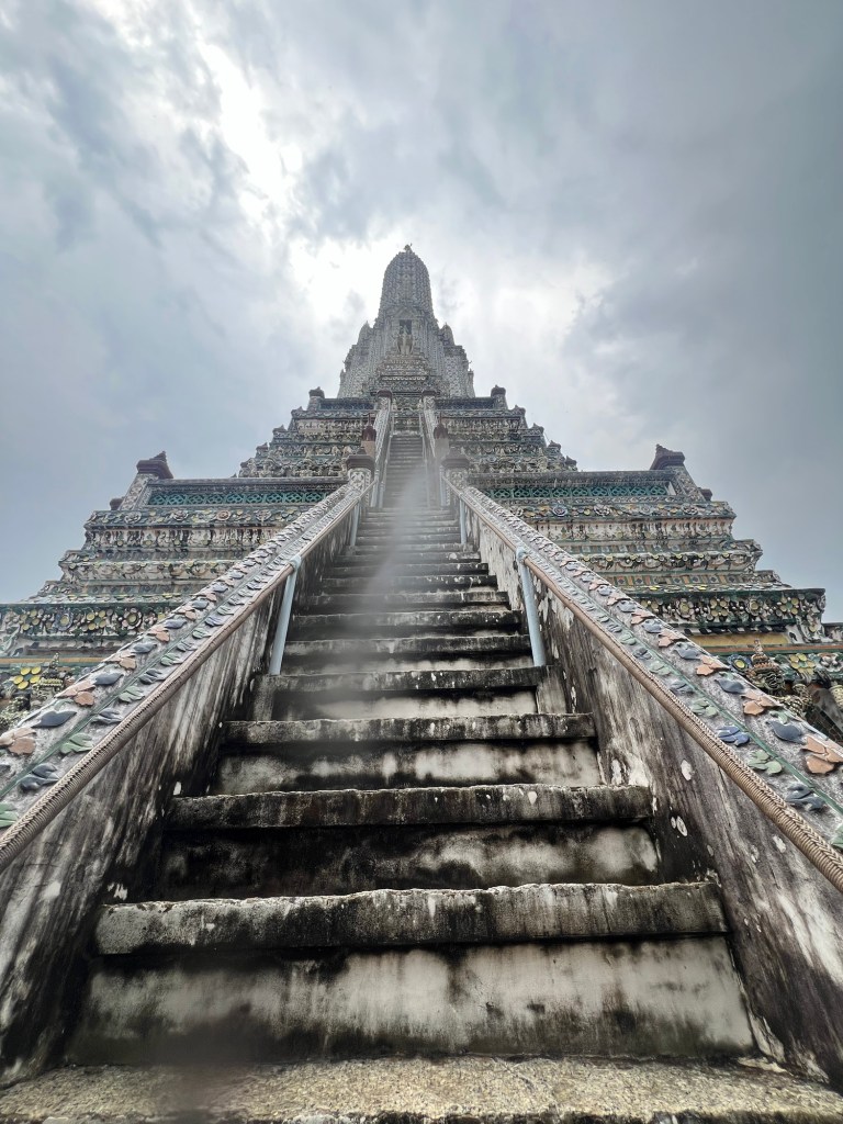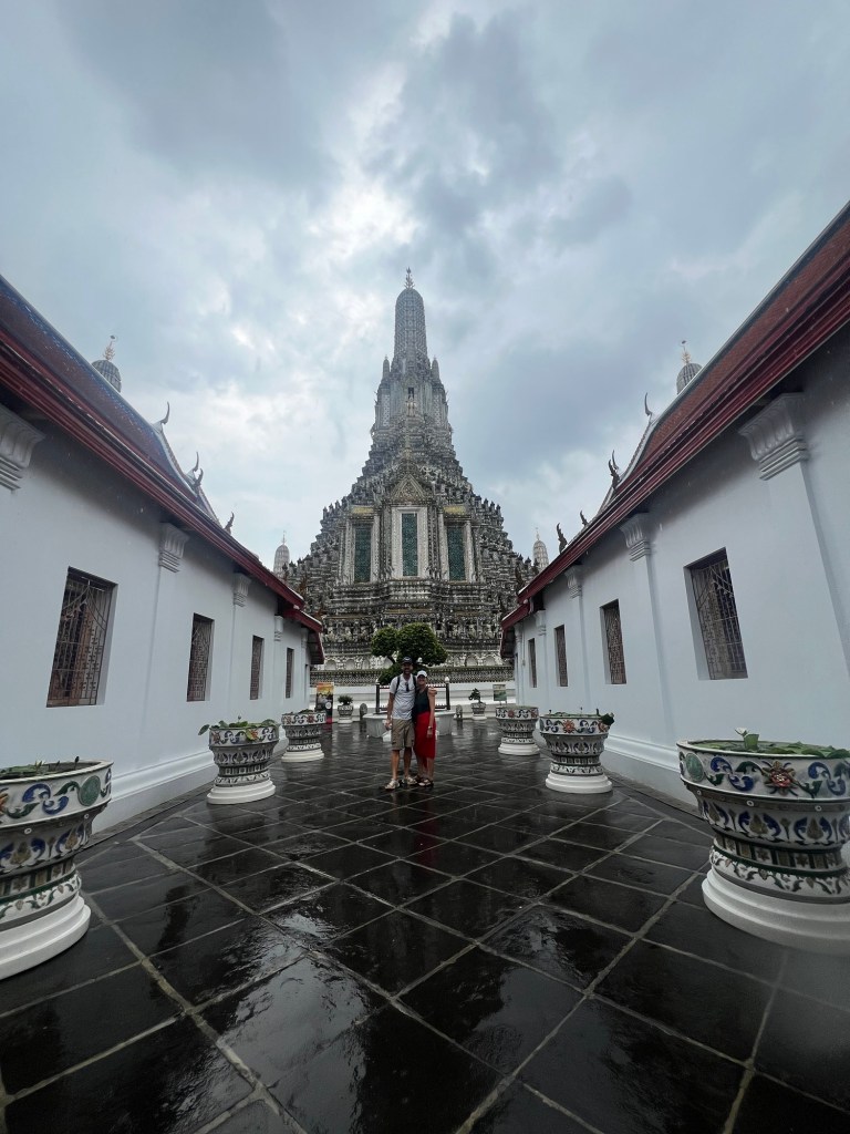 For the first time since we arrived in Bangkok, the sun was in hiding and the rain arrived clearing most of the usual tourist spots. This worked in our favour as within a hour the rains had passed and we were able to walk around Wat Arun with little or no queues.